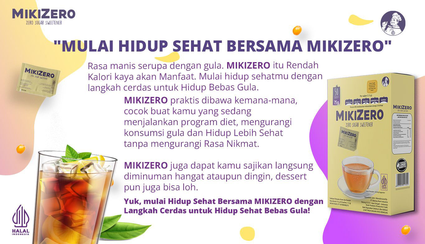 MikiZero baik untuk membantu kamu menjaga kesehatan terutama dalam menjaga kadar gula darah tetap normal. MikiZero membantu kamu agar terbebas dari diabetes, menjaga tubuh tetap sehat ideal dan mengontrol asupan kalori yang masuk ke tubuh kamu. 1 sachet MikiZero memberikan rasa manis yang serupa dengan gula, aman untuk dikonsumsi, serta membantu program diet dan mengatasi diabetes. Kamu bisa menikmati rasa manis bebas khawatir, karena MikiZero itu Zero Sugar Sweetener.